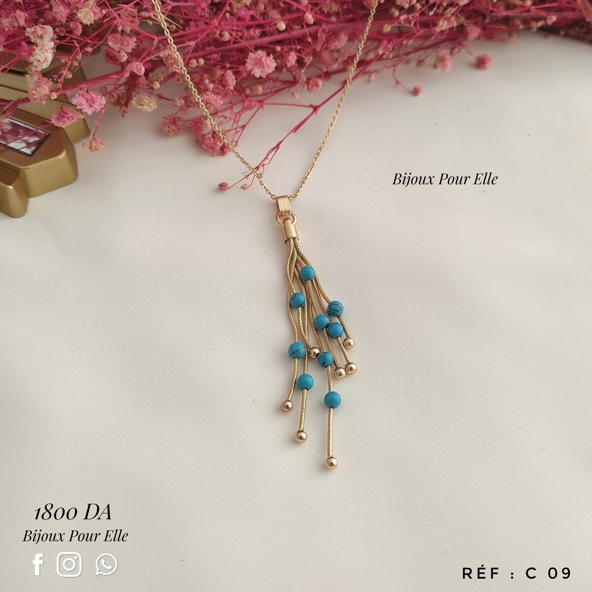 Une magnifique chaine avec motif de couleur turquoise