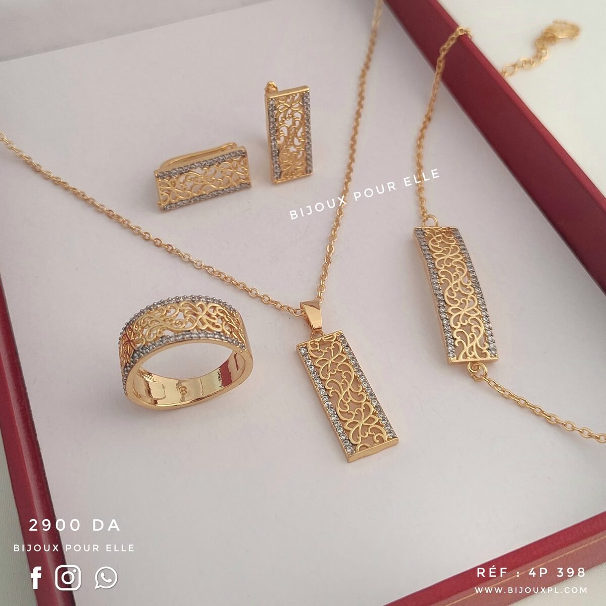 ● Magnifique parure très chic au formes raffiné incrusté de petite pierres zircon sur chaque coté 🎀✨