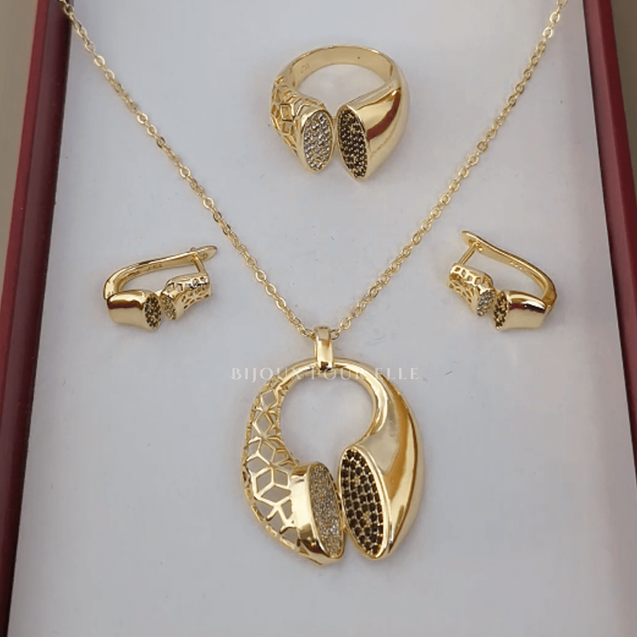 ● Très belle parure au style très raffiné avec un contour de pierres incrusté pour effet Brillant  ✨