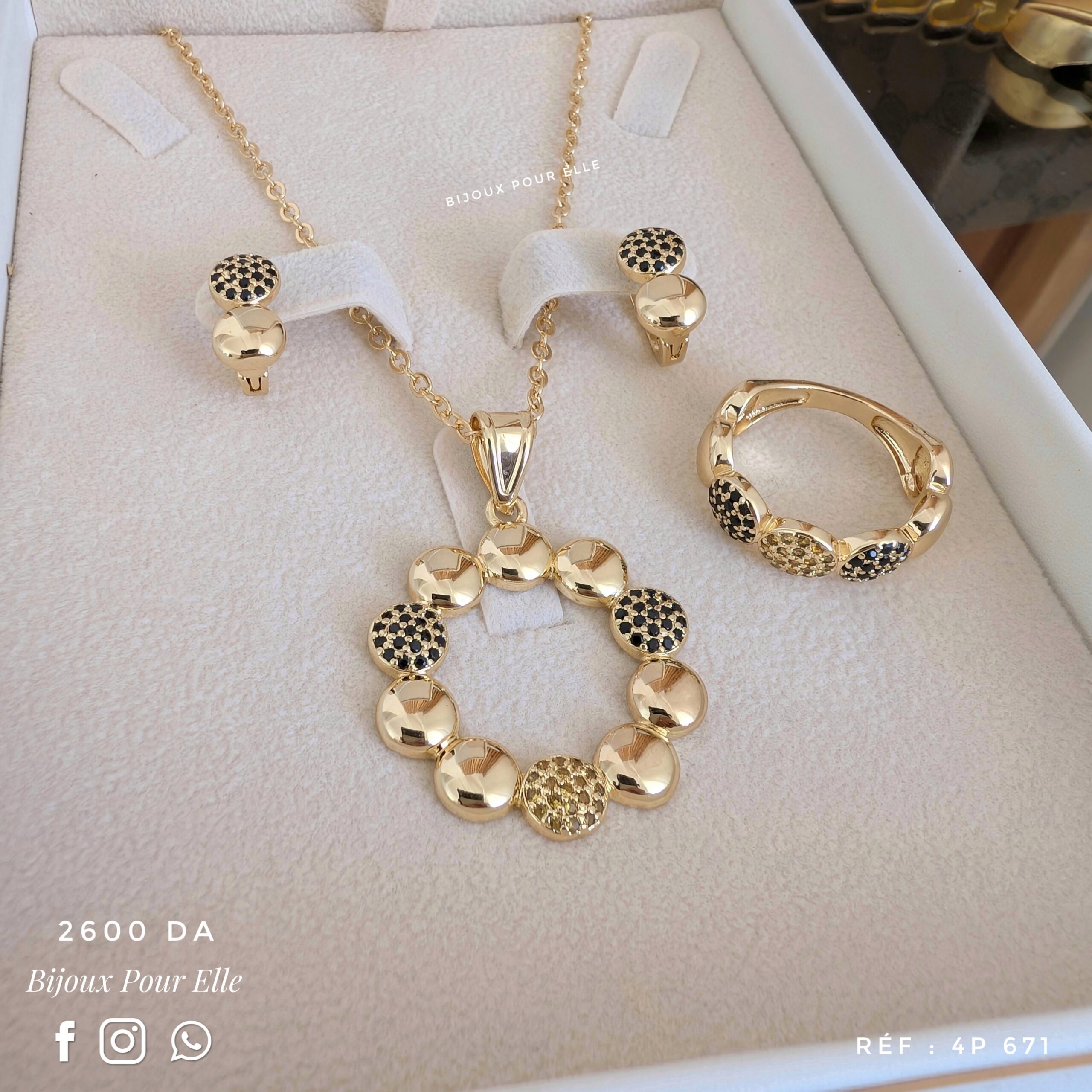 ● Très belle parure au style très raffiné avec un contour de pierres Miel / Noir pour effet Brillant  ✨