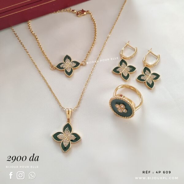 ● Très belle parure Trèfle vert incrusté de pierres zircon pour un effet sublime 🌟✨